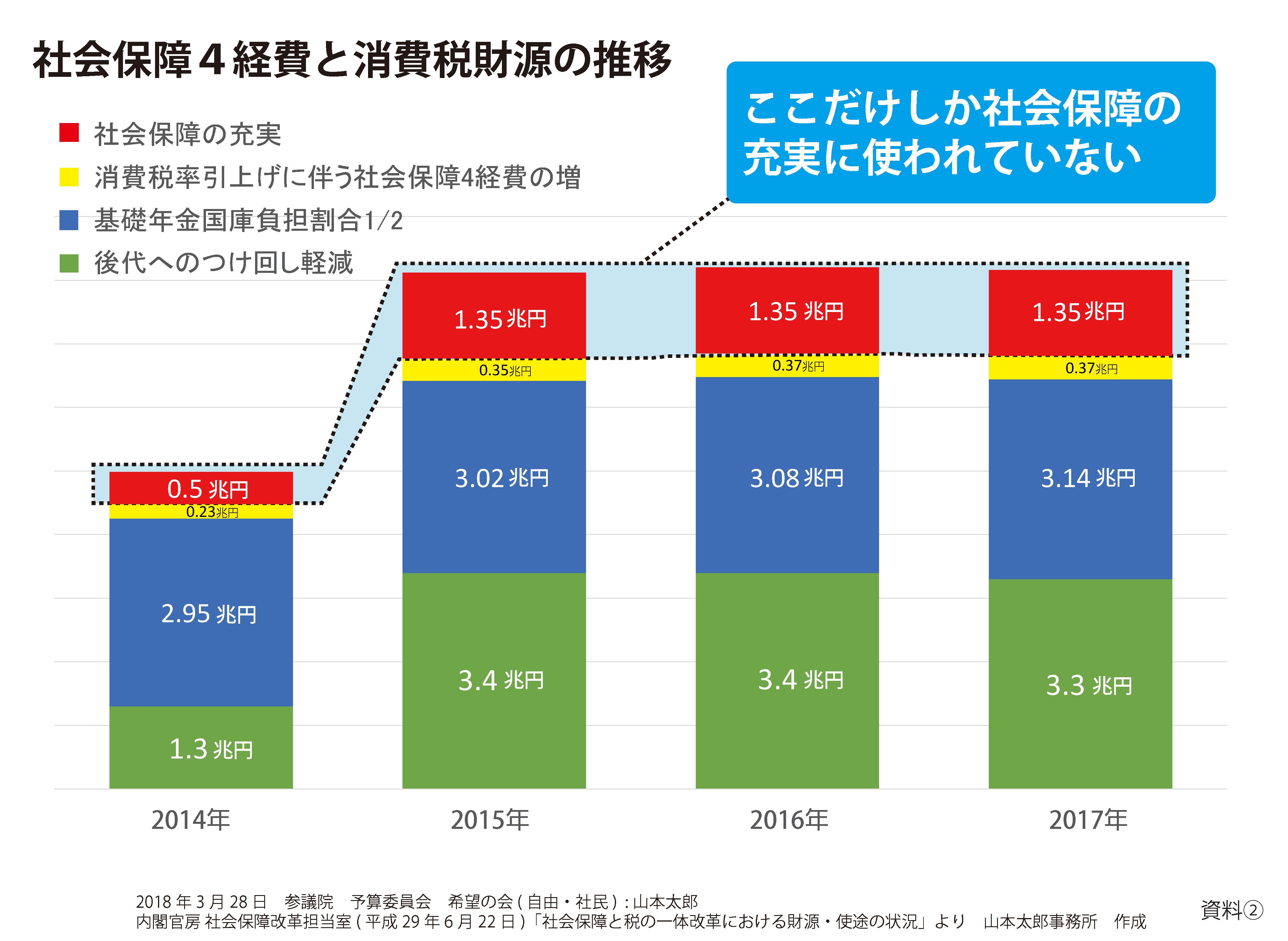 つまり借金にあてるのは、社会保障費の充実じゃないって言ってるわけ。